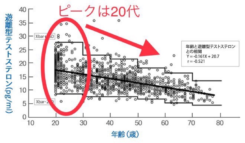 年齢によるテストステロン値低下の原因は亜鉛不足との報告も(因果関係については諸説あり)